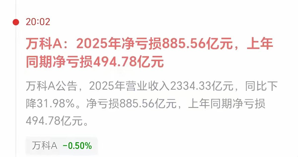 中国房地产龙头企业万科企业股份有限公司(万科A,000002.SZ;万科企业,02202.HK)近期持续受到市场关注。2025年,公司录得归母净利润亏损885.56亿元,创上市以来最大年度亏损;2026年一季度以来,债务到期压力进一步显现,公司正通过债券展期、股东支持等方式积极化险,同时聚焦“化险与发展”两大主题推进改革。
