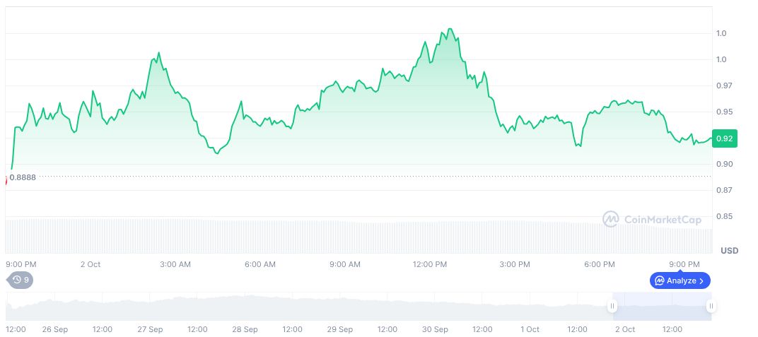 CoinMarketCap 数据显示 Plasma (XPL) 当前价格为 0.92 美元,市值 16.6 亿美元。其 24 小时交易量下降 29.24%,影响了代币流动性和投资者情绪。从三个月峰值下跌 4.09%,Plasma 的价格波动反映了投资者在这些传闻中的谨慎态度。