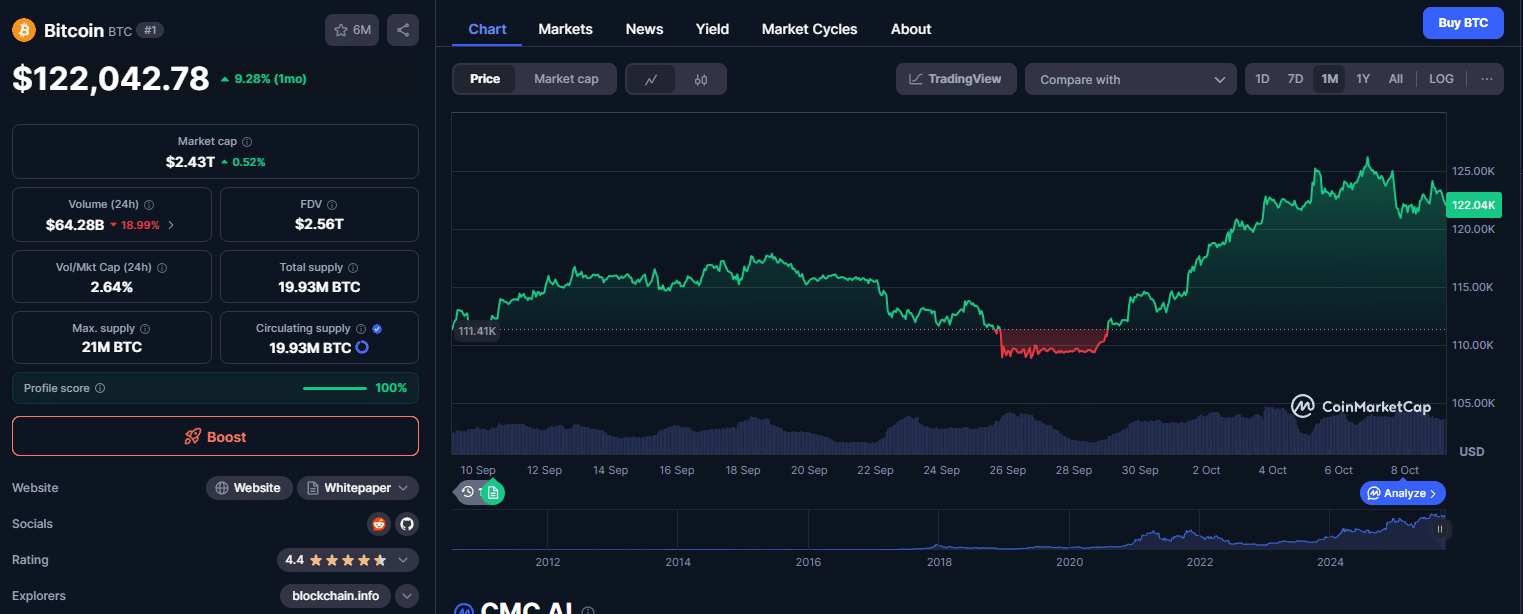 在2025年10月9日的当下,比特币价格徘徊在约122,000美元附近,刚刚突破了126,000美元的历史高点。这波涨势引发了市场资深人士和关键意见领袖(KOL)对牛市峰值的热烈讨论。传统上,比特币遵循四年周期模式,受减半事件驱动,从低点到峰值再到回调。然而,随着机构资金流入、ETF需求激增以及宏观经济因素的影响,许多专家开始质疑这一模式是否仍适用。他们在时间预测、价格目标以及对四年周期理论的解读上呈现出明显分歧。