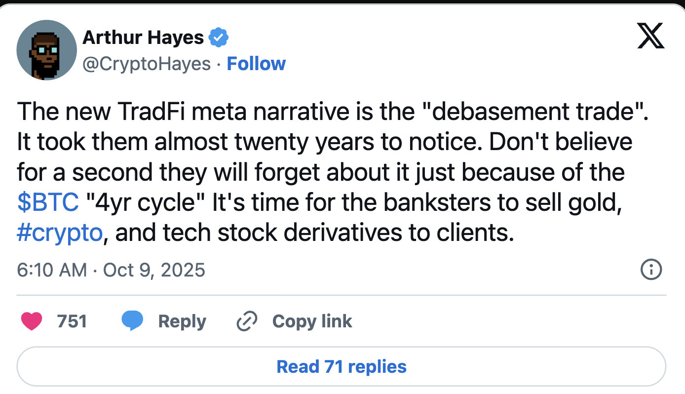 另一方面,一些KOL认为传统四年周期已演变为更长模式,受宏观流动性、ETF流入和数字资产采用驱动。BitMEX联合创始人Arthur Hayes和Unchained Capital的Joe Burnett均预测比特币将在2025年底达到250,000美元。 他们认为机构因素正扭曲节奏,导致周期延长至2026年初。