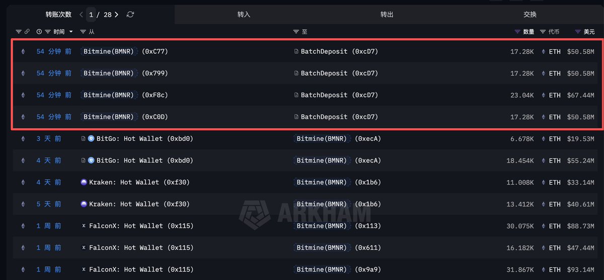 2. 机构信心回暖 → BitMine等玩家持续买入质押,类似2024年ETF流入前的积累阶段。