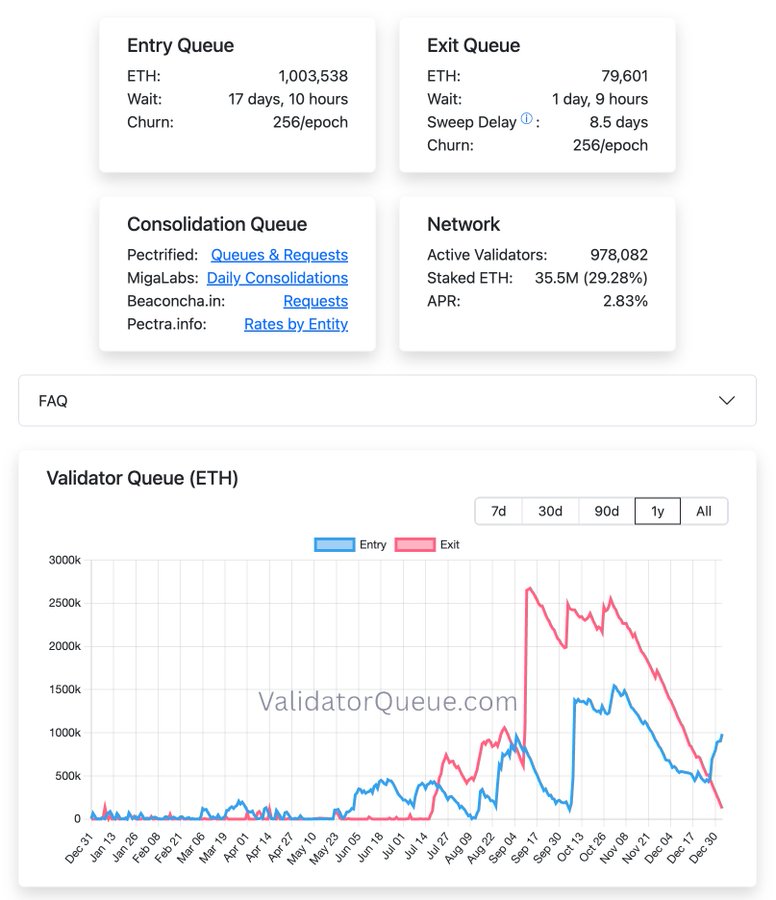 进入队列:约998,300 ETH等待激活,预计等待时间达17天以上。