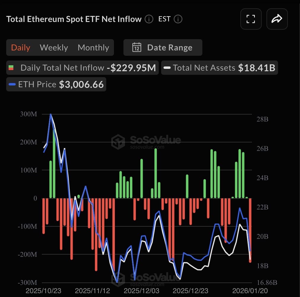 以太坊价格在2026年初的整体市场波动中展现韧性。截至1月22日,ETH交易价格约3000美元,过去24小时上涨约1.3%,但过去一周下跌约7%(此前本月曾触及3300美元附近高点)。年内迄今上涨约2%,市值超过3600亿美元。