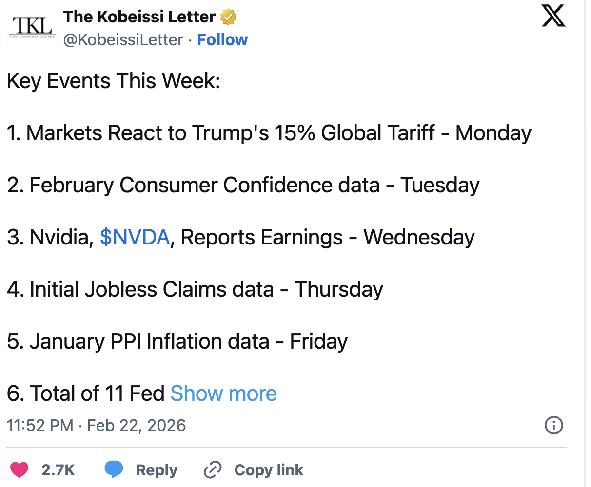 2月23日至27日的经济事件