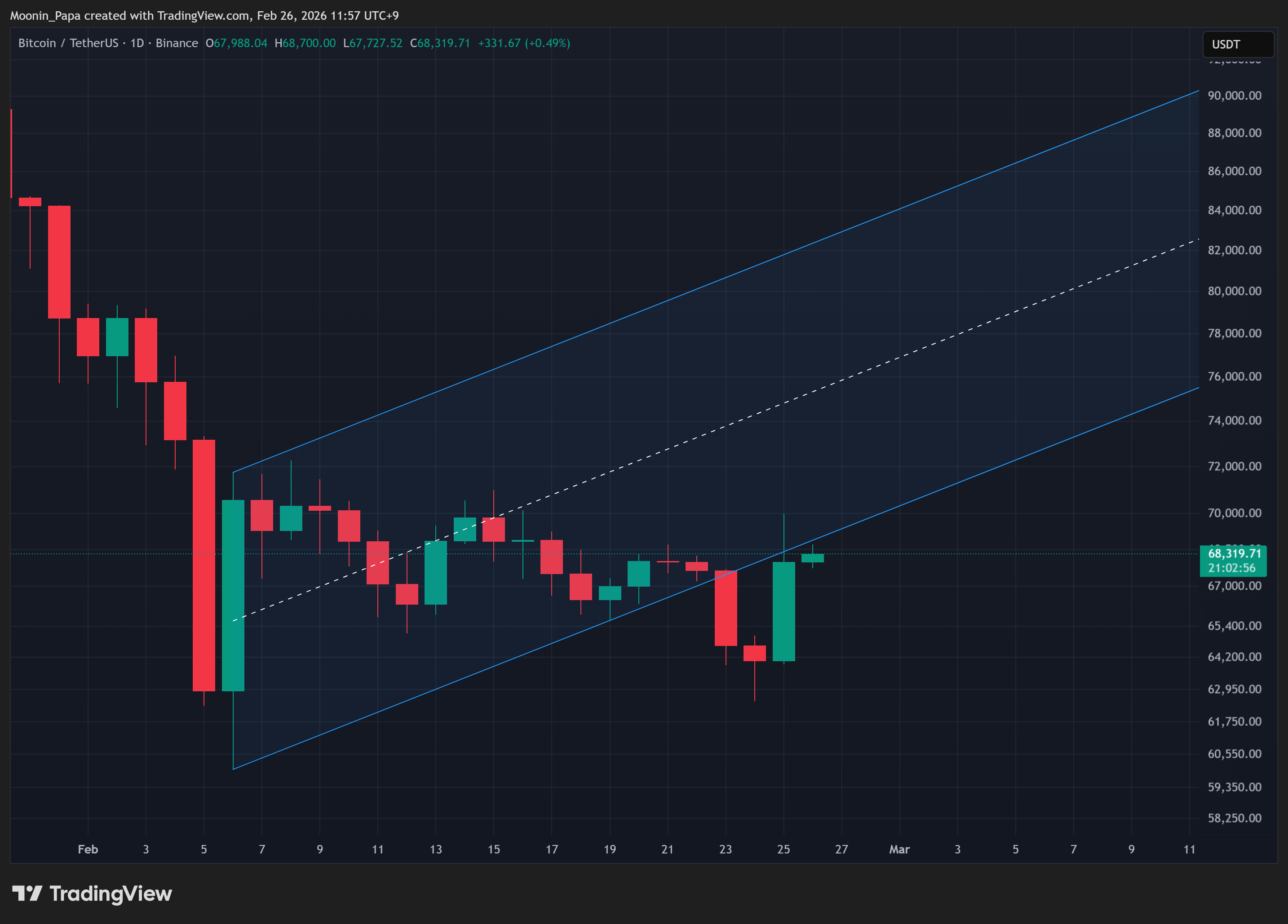 比特币意外上涨9.5%,上影线触及每日 TBO 云层与 Fast 线,但未能收盘于云层之内。成交量虽有支撑,却仍低于30日移动平均线,且 BTC 未收复前期支撑位,确认其已转为阻力。即使将熊旗形态下调至周二低点(略低于63,000美元),此次反弹也仅触及平行通道中部——凸显熊市结构仍未化解。