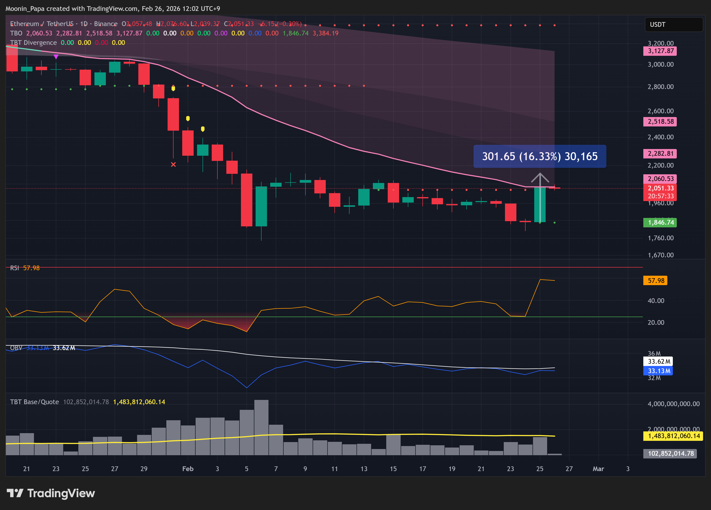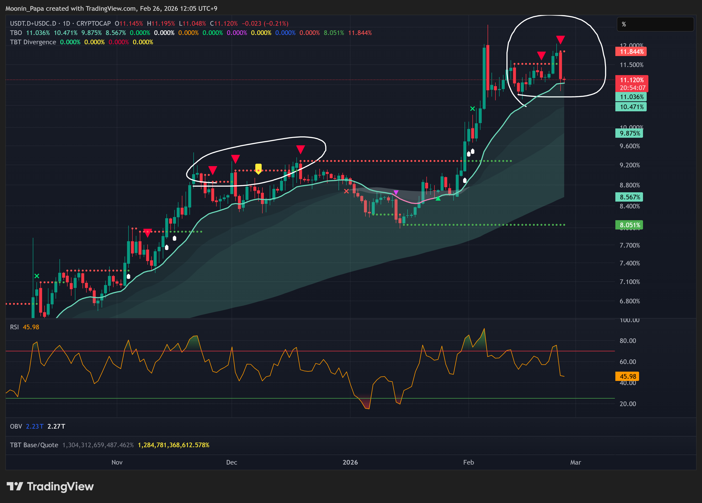 稳定币主导率出现第二次 TBT 看空背离,并刺穿每日 TBO 云层,释放熊市盘整信号。虽然 ETH 及其他山寨币日线技术面仍偏看涨,但形态与去年11月底至12月的设置如出一辙,提醒我们在任何持续反弹前务必保持谨慎。