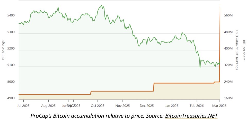 ProCap在比特币新闻新闻稿中解释称,这次新购买降低了其每枚比特币的平均成本。在同一更新中,该公司强调了另一项它认为能提升长期价值的举措:回购自家股票。
