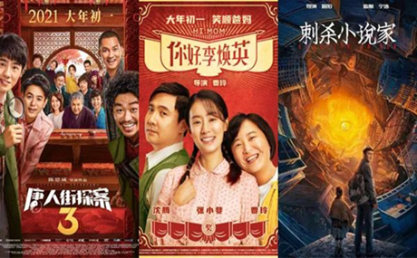 截至目前,中国春节票房前三名的电影分别是《唐人街探案3》、《你好,李焕英》和《刺杀小说家》。其中《唐人街探案3》的票房已突破人民币27亿元,并缔造了中国电影市场单片首日票房纪录、中国国产电影单日票房纪录、首映日观影人次等多项新纪录。
