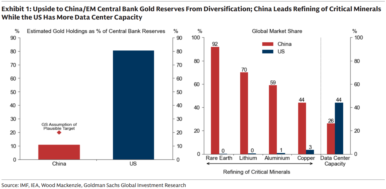 “即便黄金仍是我们最看好的单一多头商品,我们也认为更广泛的商品多头在战略投资组合配置中具有重要作用,”他们写道。“商品供应的极高地理集中度以及地缘政治、贸易和人工智能竞争的加剧,导致将商品主导权作为杠杆的情况更加频繁。这提升了供应中断的风险,突显了商品的保险价值。”