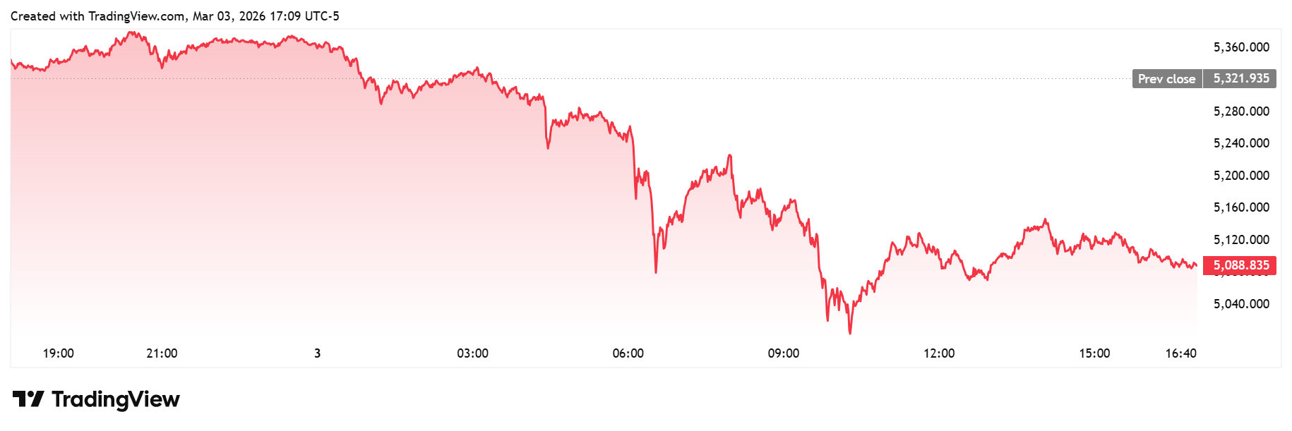 黄金和白银价格继续反映出更广泛的避险资金涌入美元,现货黄金下跌4.38%,交易价为每盎司5,088.83美元,而现货白银已跌至82.036美元,盘中损失8.18%。