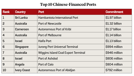 中国的优势不只是速度快、灵活、钱多,更在于它能给客户国提供一整套服务。由中国官方机构资助的港口或港口设施项目里,大约35%都同时涉及中方对港口的所有权或者运营控制权。除了建设或扩建,一家或好几家中国实体可能还负责港口的运营、提供大型岸吊和海关扫描仪、免费的物流平台,还会拉来大型航运和物流公司——后者能确保这个港口被纳入主要航线,接入全球网络。